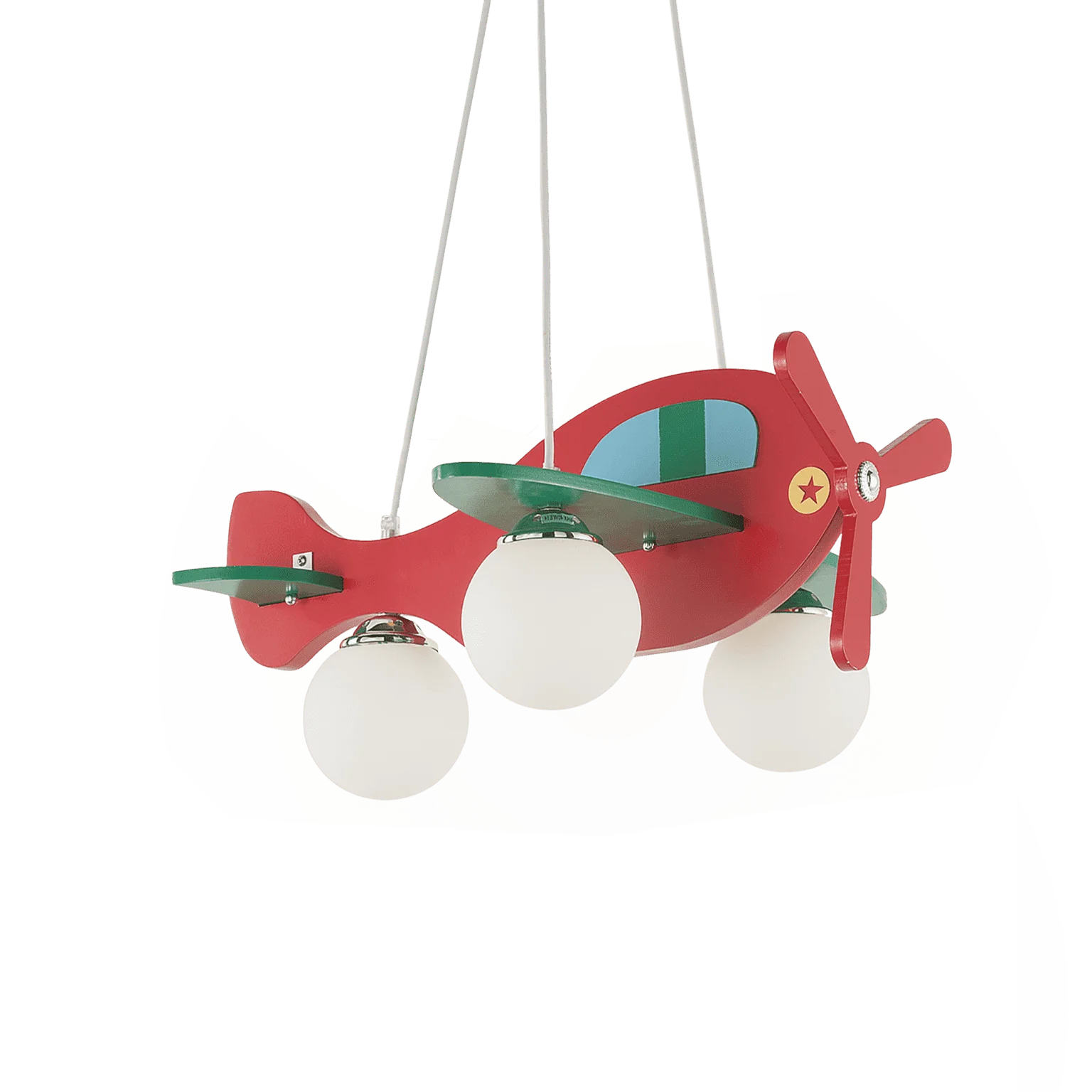 Las luces del techo de la habitación de tu hijo deben contribuir a la estética del espacio. Juega con lámparas infantiles pero decorativas, por ejemplo ésta, con globos de colores colgantes, que hemos encontrado en la misma tienda que el avión colgante. Nos encanta, porque cuando deje de usarse en la habitación infantil, encaja en muchos sitios de la casa.