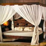 Una cama con dosel puede ser cubierto con material diáfano o cortinas para ofrecer un toque de misterio y para crear un ambiente cálido e íntimo, incluso para darle una sensación acogedora.