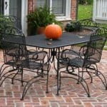 Muebles de patio, para esta zona el estilo de decoración de hierro forjado es una opción muy popular para mucha gente. Es elegante y al mismo tiempo es una opción económica y de bajo mantenimiento. Puede colocar los muebles al aire libre como sea necesario, en un día soleado para compartir con la familia se puede agregar alegres y coloridos cojines, manteles de mesa y así sucesivamente se puede mejorar mucho el encanto de la decoración en base al hierro forjado para el aire libre. Las mesas de hierro forjado, sillas y bancos se pueden encontrar en las tiendas de implementación para el hogar, grandes ferreterías e inclusive por vía online.